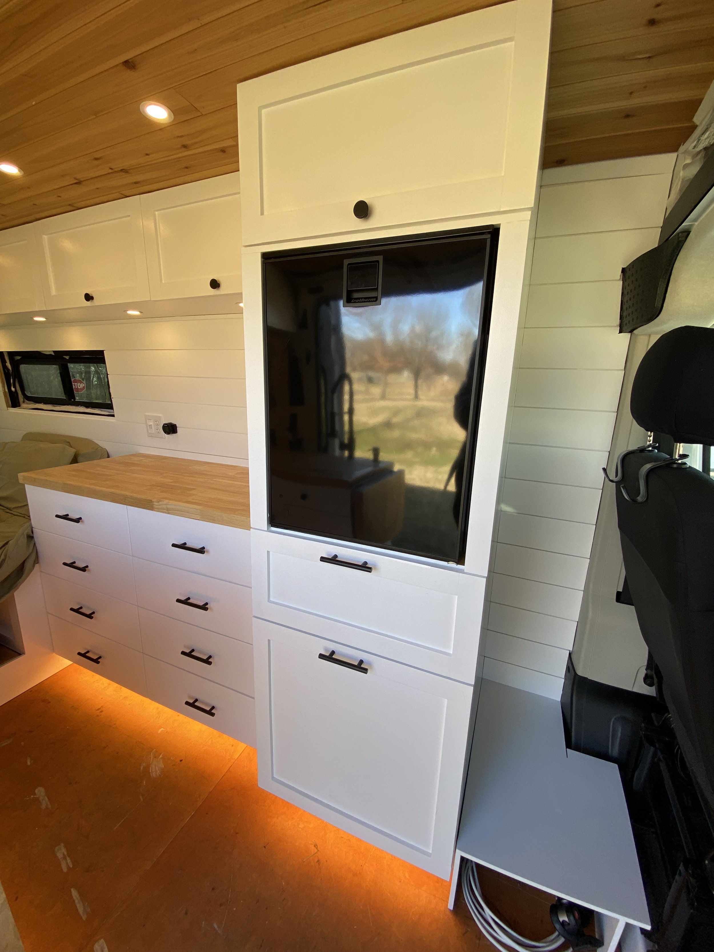 Again, takes up a lot of useable space and I didn’t want a large propane container in the van for safety reasons.