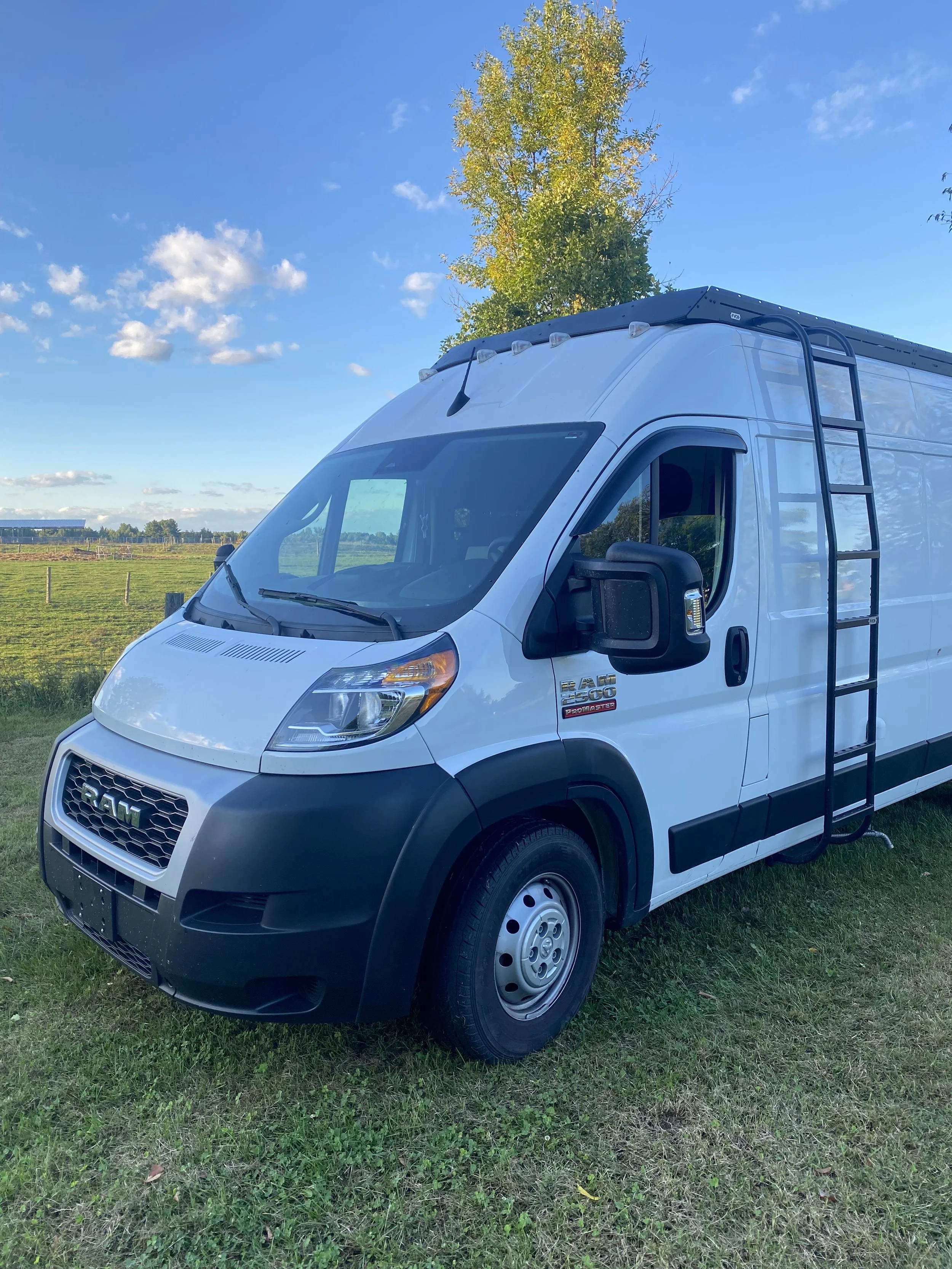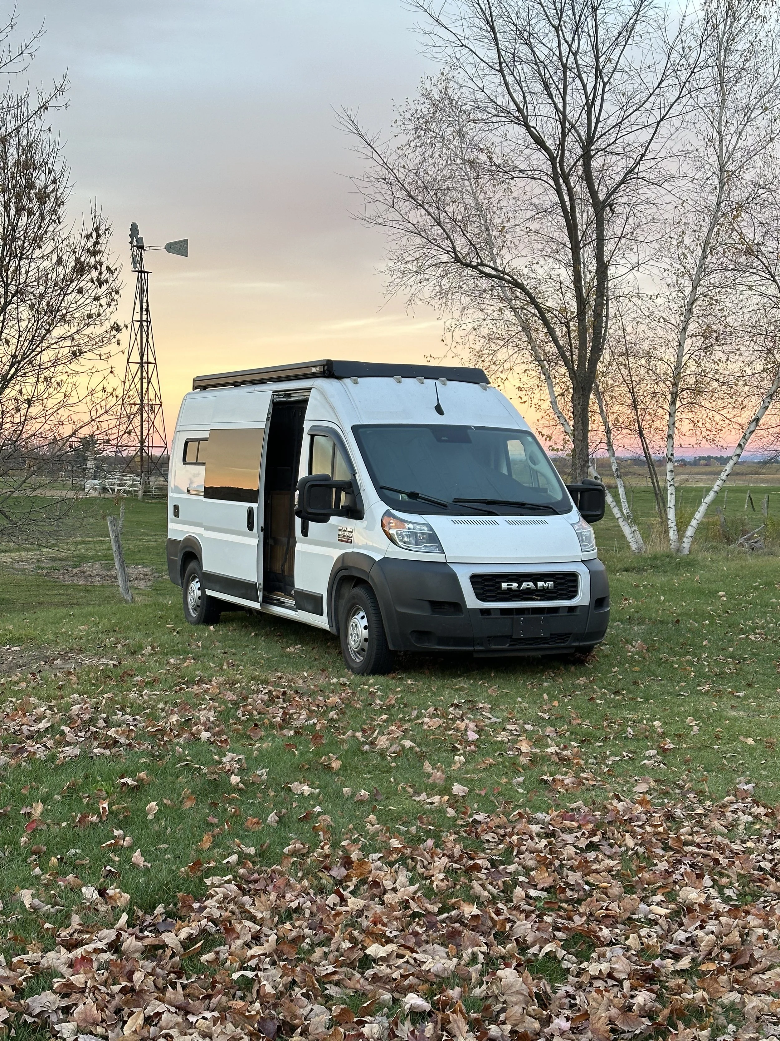 Run the drip rail past the sliding door seam so water has room to run down the van wall instead of inside the van