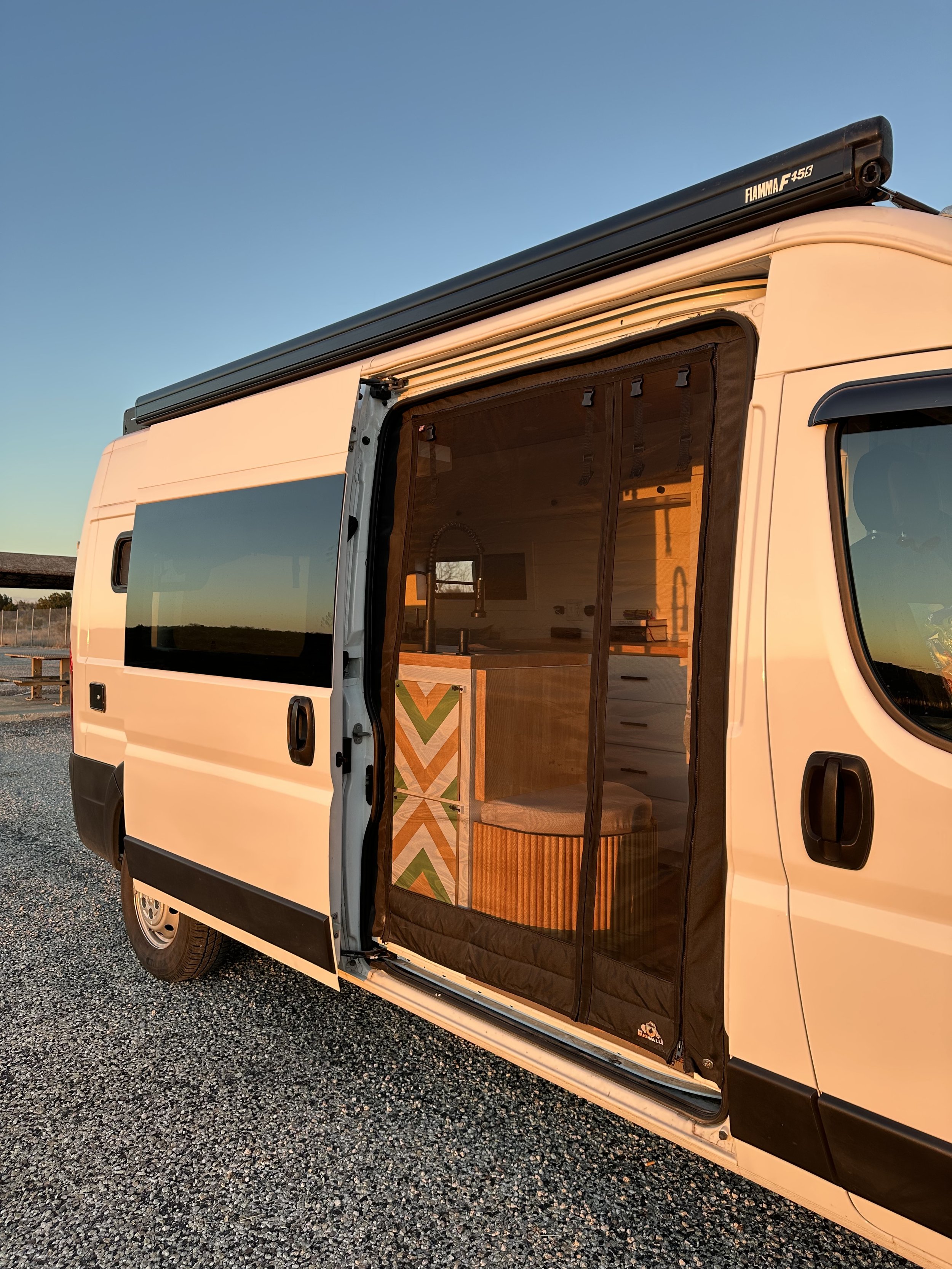 For the first 3 years, I dealt with flies and bugs coming in the van whenever I wanted to have the doors open for fresh air and to enjoy the views… it was miserable