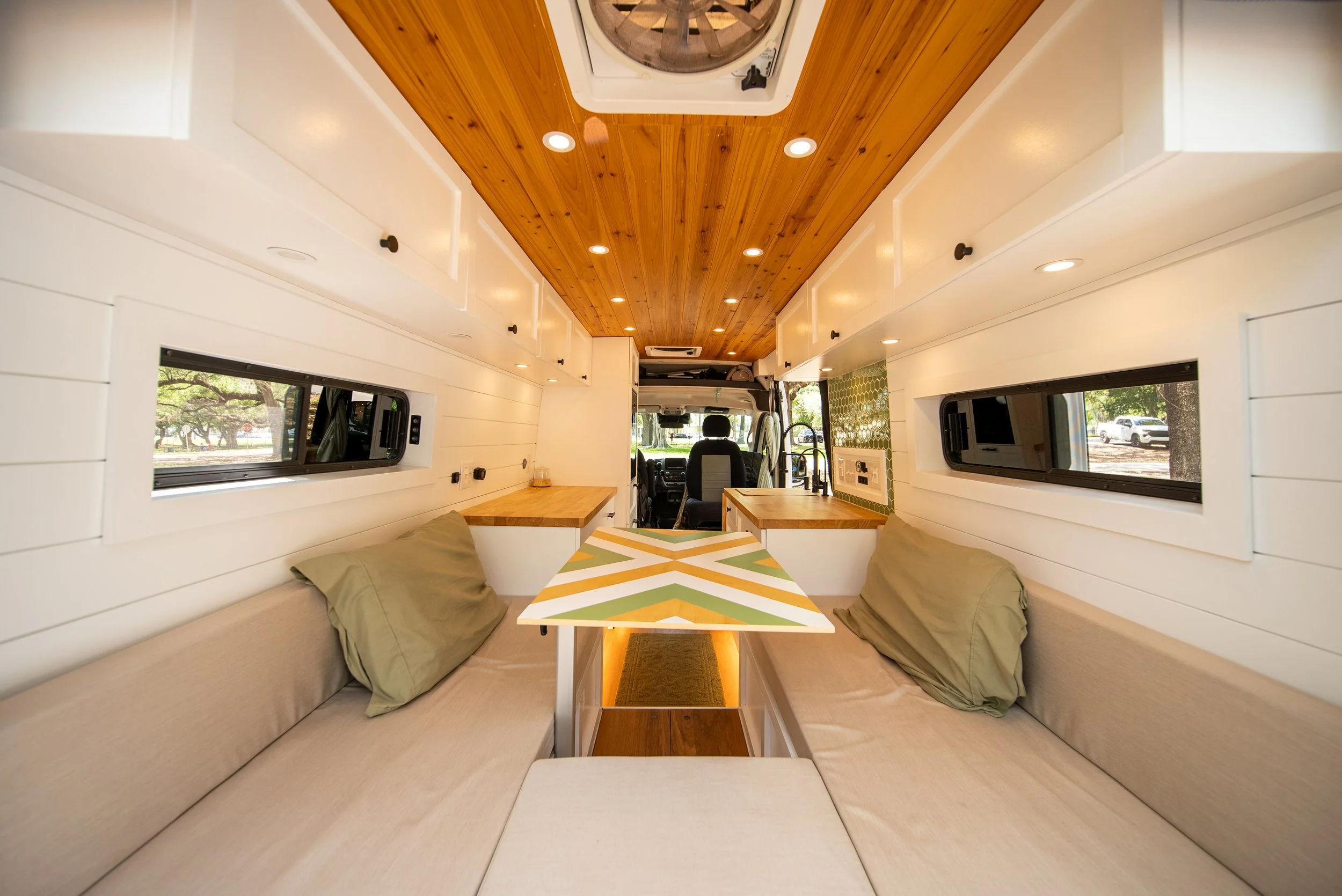 Evenly distributes light and helps define different areas of the van