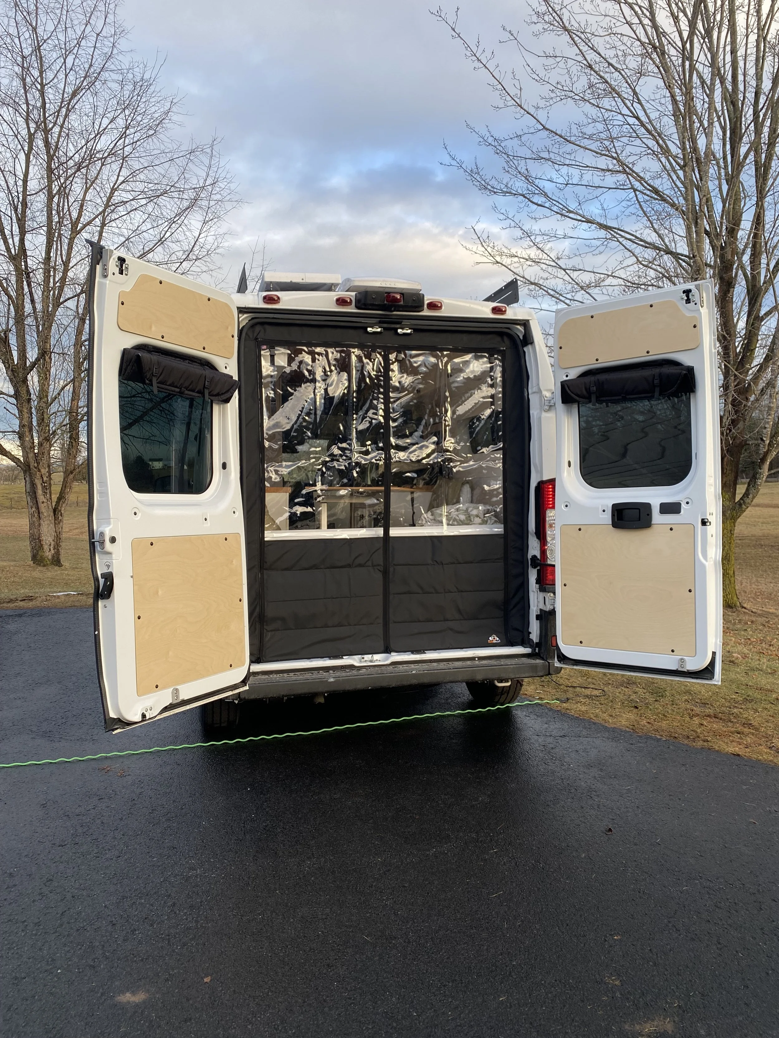 Out There Vans has door panels for the top and bottom sections of the rear and sliding doors, plus the back corners on the inside of the van